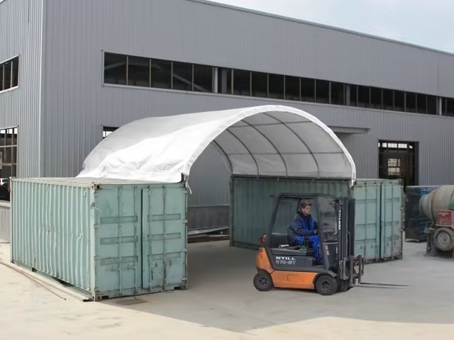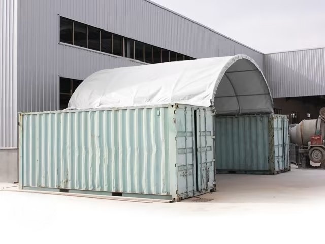 Cubierta entre contenedores 8×12, PVC 2300 IGNIFUGA Verde